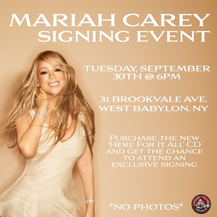 Greenlawn native Mariah Carey was at Looney Tunes in West Babylon for an autograph signing. It was for her new album “Here For It All,” which came out on Friday. Here is a local news feature from News 12 Long Island: Here is some footage from Instagram: View this post on Instagram A post shared…