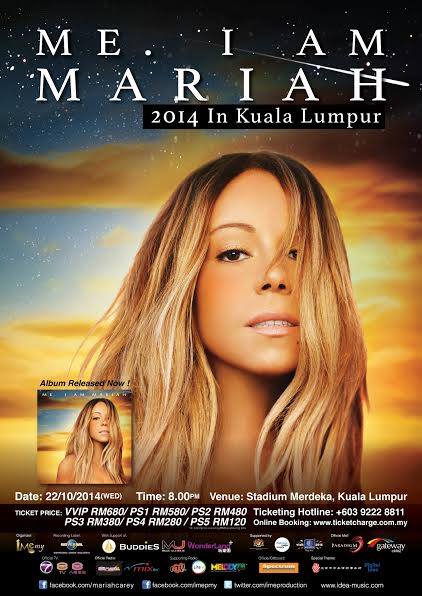 IME Productions is proud to announce ‘ME. I AM MARIAH’ Live in Malaysia 2014. This concert which is supported by Malaysia Major Events, an agency under the Ministry of Tourism & Culture, Malaysia will be kicking off on 22nd October 2014 at 8pm at Stadium Merdeka. After 10 years, Mariah is back on our shores…