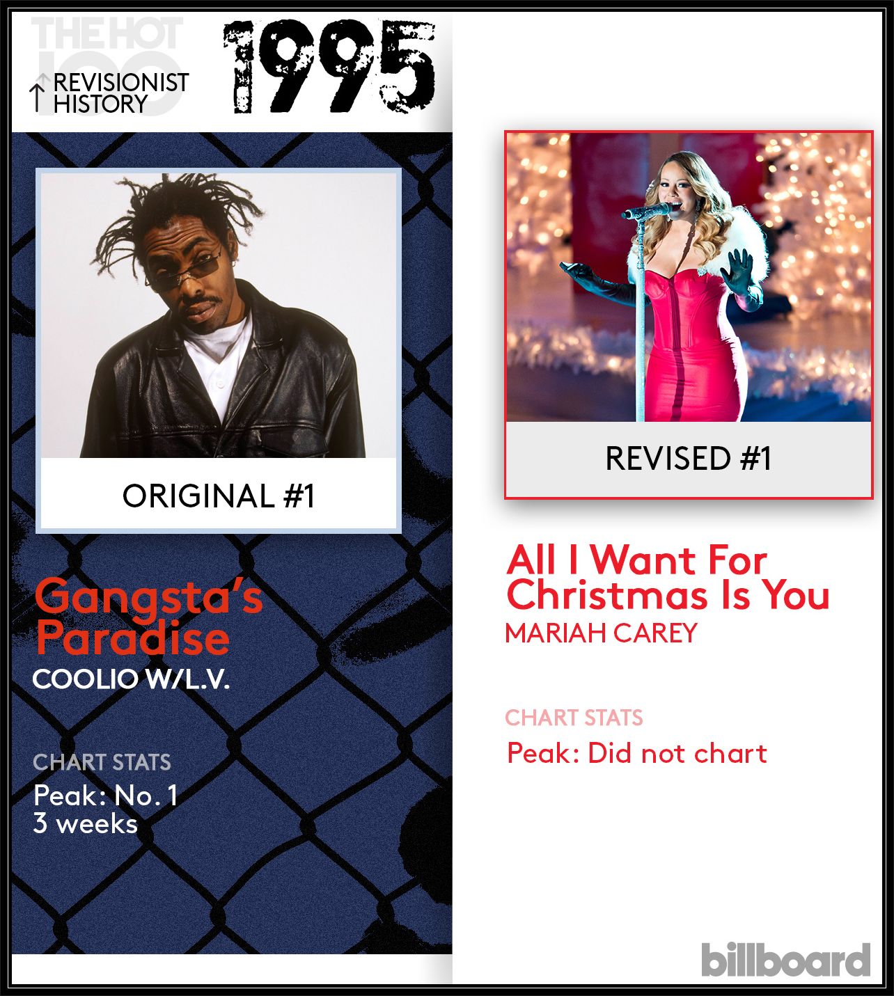 Although Mariah Carey achieved No.1-of-the-year status in 2005 with “We Belong Together,” none of her record-setting 14 chart-toppers during the 1990s ruled any of those years, based on the original tallies. Ironically, it’s a ’90s song that didn’t even chart on the Hot 100 during its release that makes Carey the star atop the tree on 1995’s revised list.